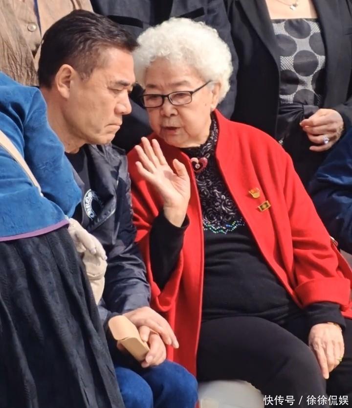 当岁田华穿着刺绣T恤,外搭红色外套,下身黑色裤子,状态很好,正在和陈宝国聊天,而陈保国也非常的贴心把耳朵凑到田华的旁边,不得不说,陈宝国真的好尊老爱贤啊!